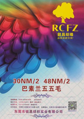 东莞市锐昌纺织有限公司坐落于“中国毛织第一村”——东莞市大朗镇巷头村。自 2006 年成立以来,本商行精心致力于羊毛混纺的开发与经营,主要产品:丝光真三七毛、巴素兰五五毛、巴